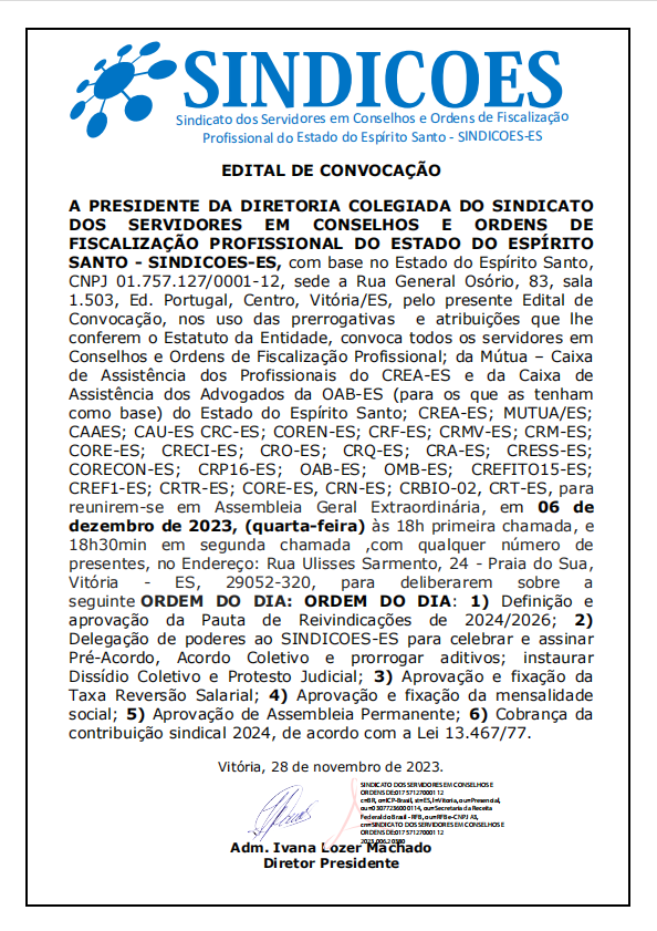 27/11/2023 - Edital de Convocação e Minuta de Pauta de Reivindicações